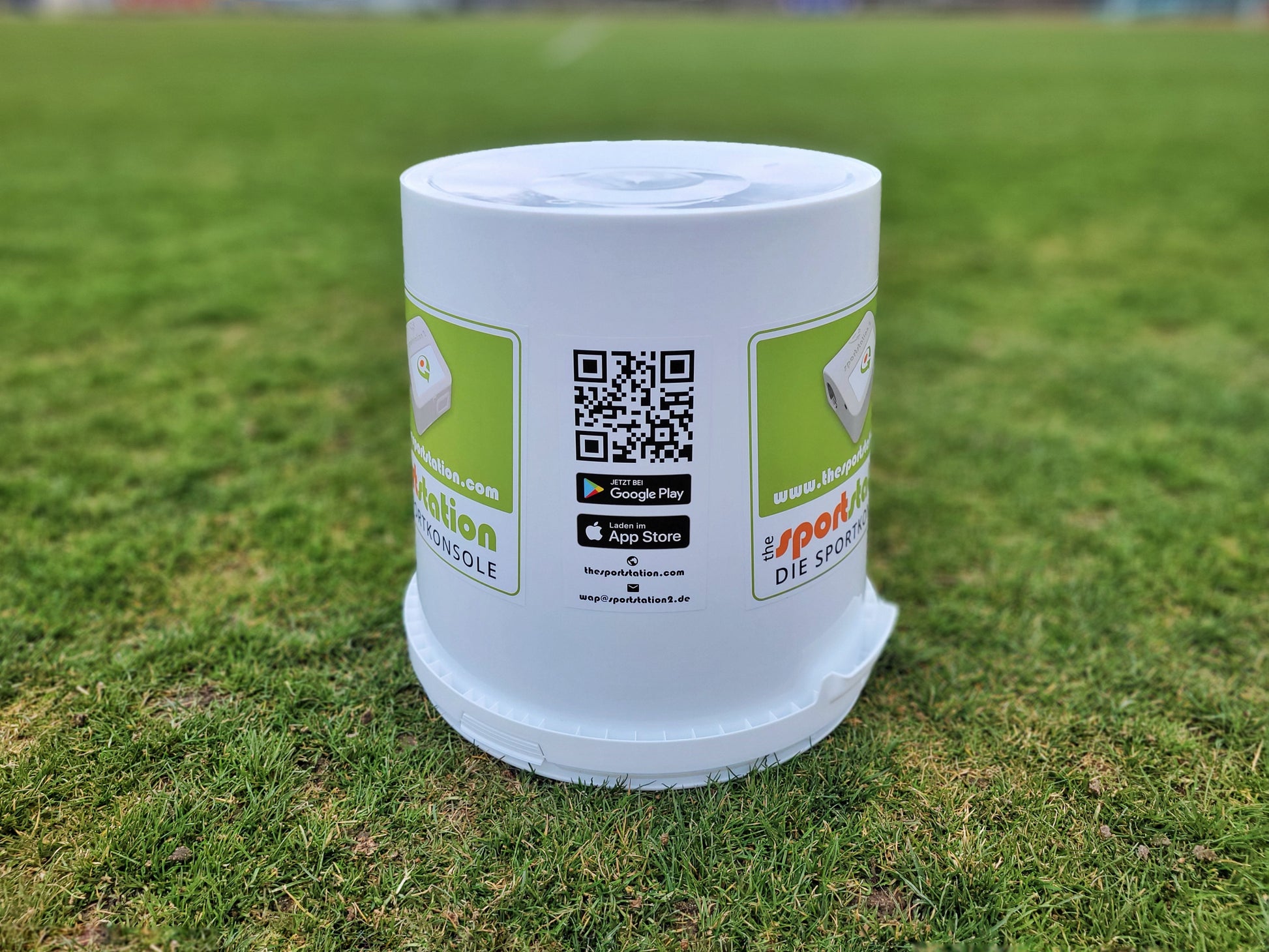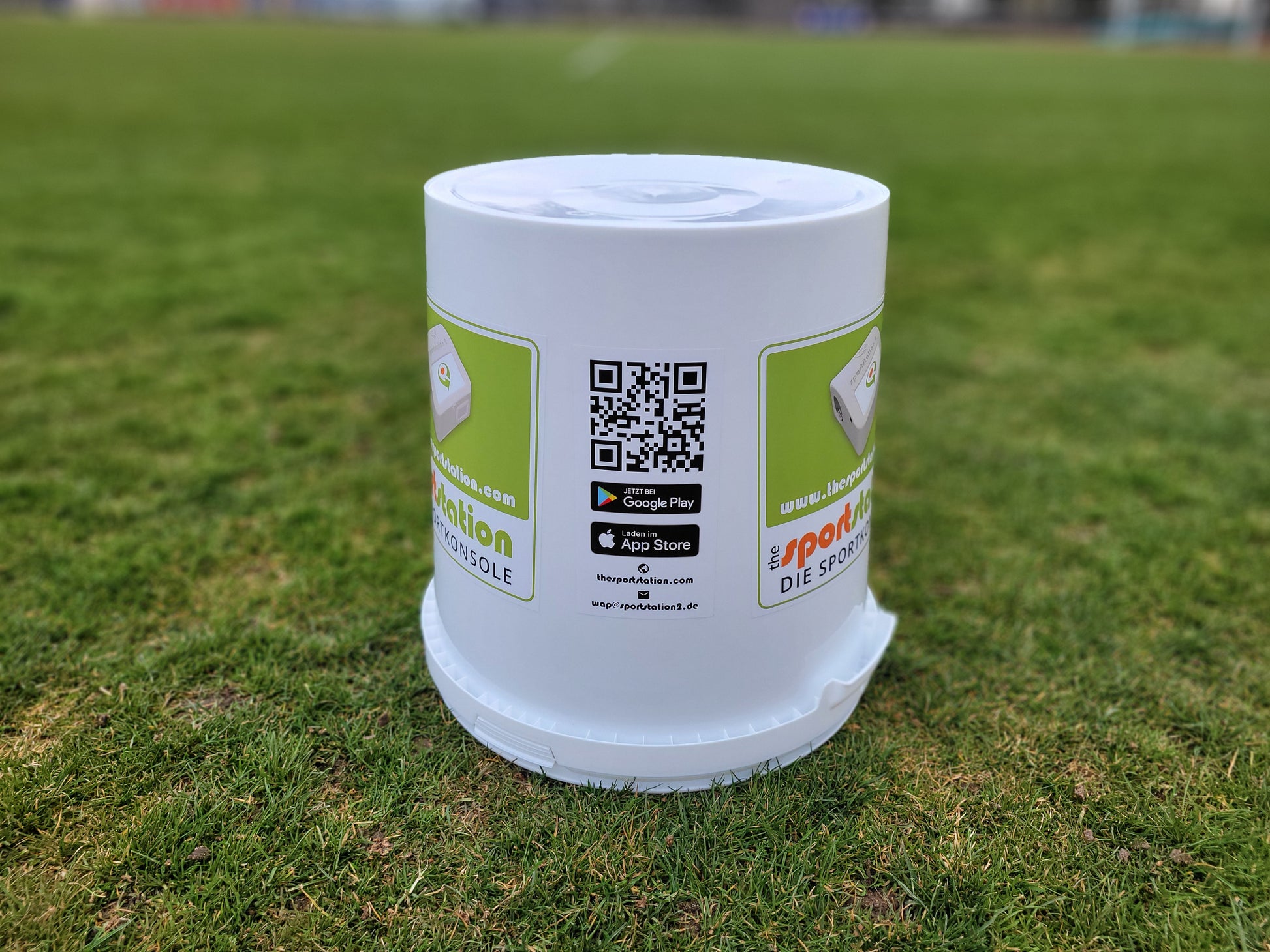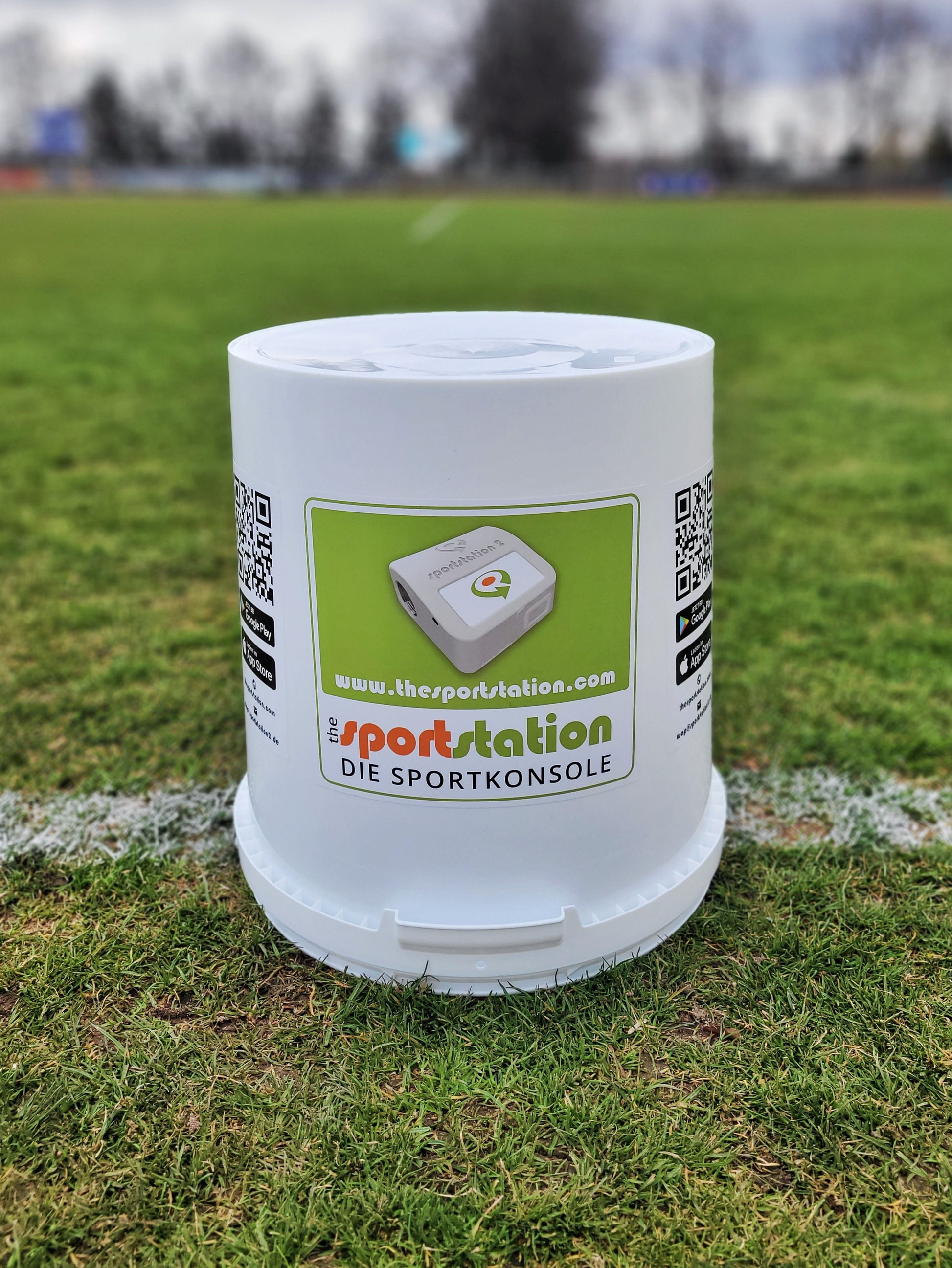 Der Eimer ist beklebt und mit einem QR Code versehen, der auf die sportstation2 connect App verlinkt. So können alle Athleten schnell die App finden und ihre Statistiken einsehen!
